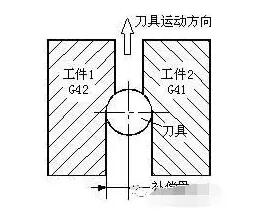 刀具半徑補償分可為刀具半徑左補償和刀具半徑右補償,分別用 G41 和G42 定義。根據 ISO 標準, 沿刀具前進方向當刀具中心軌跡位于零件輪廓左邊就為刀具半徑左補償,用 G41 表示。如果刀具軌跡在零件輪廓的右邊為刀具半徑右補償, 用G42表示。 當不需要進行刀具半徑補償或加工結束時,為使刀具返回到開始位置, 必須用 G40指令來取消刀具半徑補償。