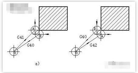 G41指令為刀具半徑左補償(左刀補),G42指令為刀具半徑右補償(右刀補),G40指令為取消刀具半徑補償。這是一組模態指令,缺省為G40。