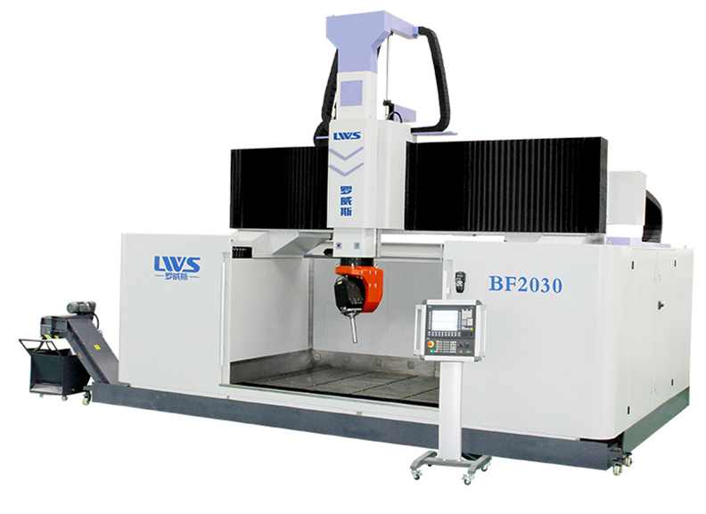 羅威斯BF系列五軸加工中心歐洲進口雙擺式五軸頭,X軸行程可選擇:1000mm-4000mm,Y軸行程可選擇:1000mm-3000mm,滿足不同規格的汽車配件加工,采用最先進的西門子840D系統,搭配鏈式刀庫,可配備40把刀具,可快速切換。此產品適合:汽車塑料磨具、汽車電子、車燈磨具、飛機鋁合金零部件加工、機械零件加工等,可對工件進行高精度銑銷、鉆孔、攻牙、倒角、開槽、修邊、切割等加工。
