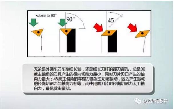 (3)對于細長刀桿的鏜刀和車削細長軸零件應采用90度主偏角刀具