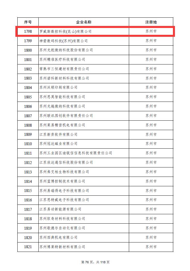 近日羅威斯數控科技(昆山)有限公司憑借專業的研發隊伍、雄厚的技術實力、持續的創新能力、科學的企業管理,順利通過江蘇省科學技術廳科技型企業認定。