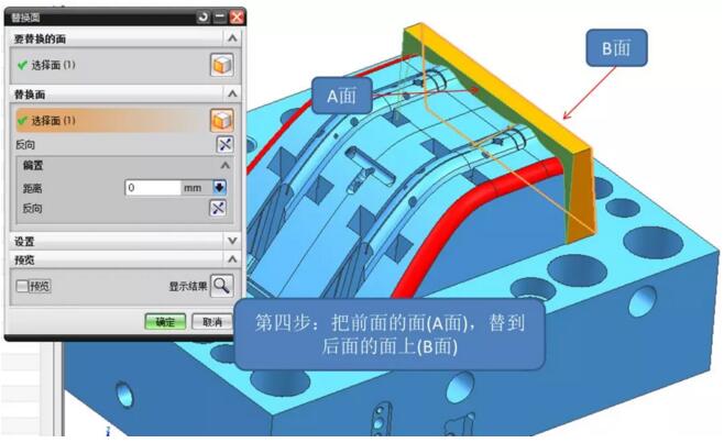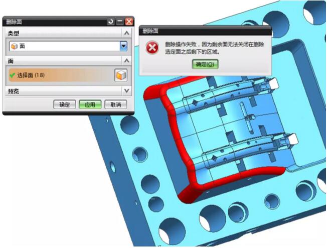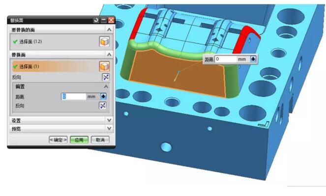 看到?jīng)],那里報警了,啥原因?替換的原理,是把我們選擇的目標面,做平我們指定的面,在這個過程中,它周圍相關的面必須要延伸或縮短,才能形成新的面,在這個過程中,由于公差,或者面的質(zhì)量,或者與旁邊的孔或其它特征有干涉直接難以成型時,就不能生成新的面了。至于到底是什么原因造成這個問題時,工作中,很難有這么多時間去研究清楚。我們一般是直接選其它方法來完成。